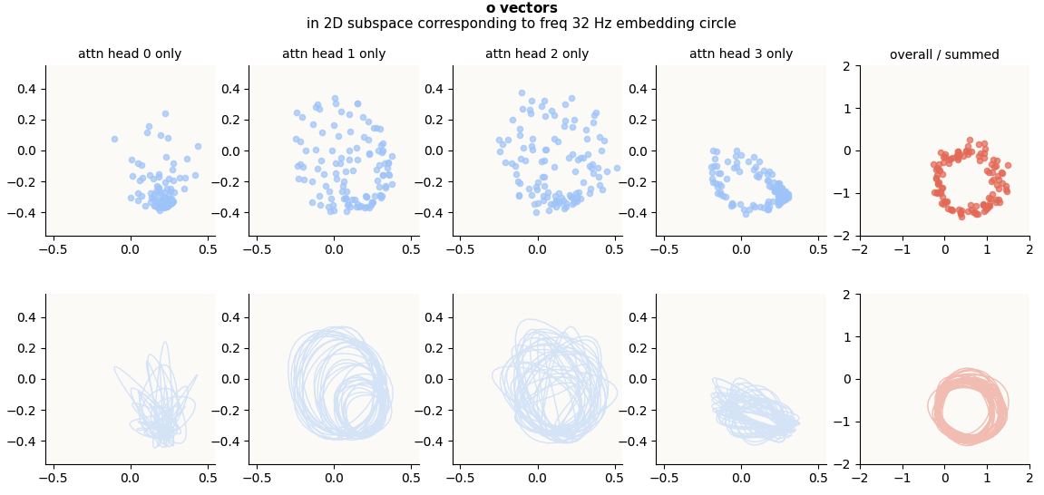 o-vectors corresponding to Fourier-Inferred 2D subspace (32 Hz Embedding Circle), head-wise and summed