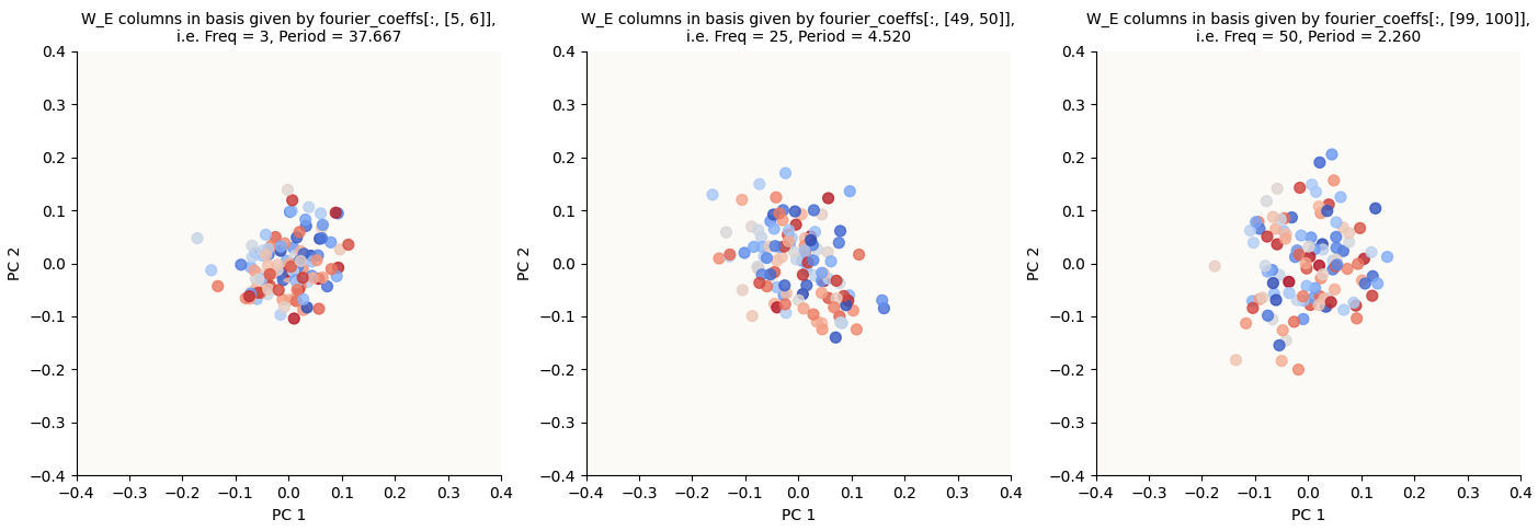 W_Efrequencies are very clean, whereas I only managed to produce 4 clean pairs in this run, with a few other frequencies being somewhat in-between in norm. - The frequencies that are “active” are different from the set of 5 that they cited in the paper.