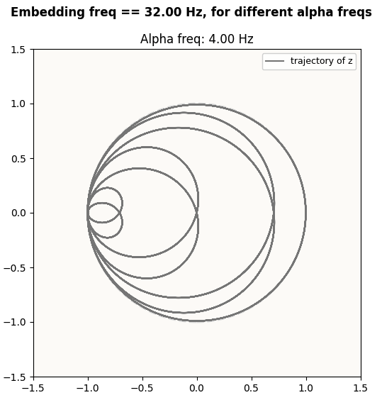 The same happens for the 2D subspaces corresponding to the other embedding circles. Here are the plots for the 32 Hz embedding circle: