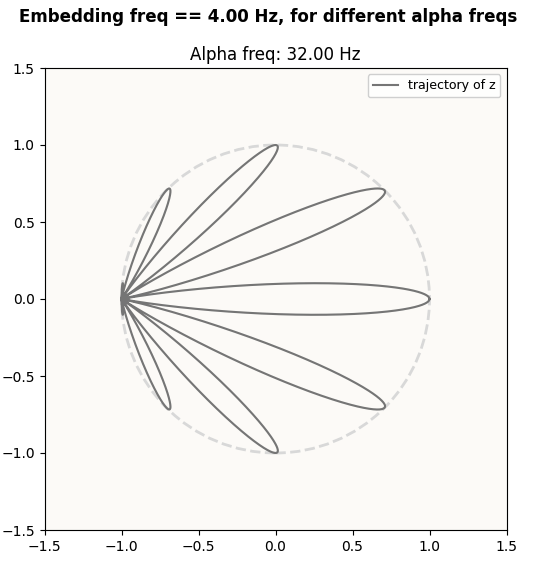 - Embeddings that approximate periodic functions like sines and cosines are especially amenable to composition (constructive interference) to give that desired simple circle. This is essentially the Fourier Decomposition argument again - something like: just like how sines and cosines of different magnitudes and frequencies can combine to give any arbitrary function, multiple instances of the above petal structures (generated the way we generated them) of various orientations and frequency combinations can combine to give any arbitrary function, and particularly, a simple circle.
