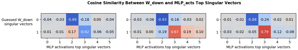 The relevant W_down Rows are Similar to 3rd and 4th top Singular Vectors of MLP_activations
